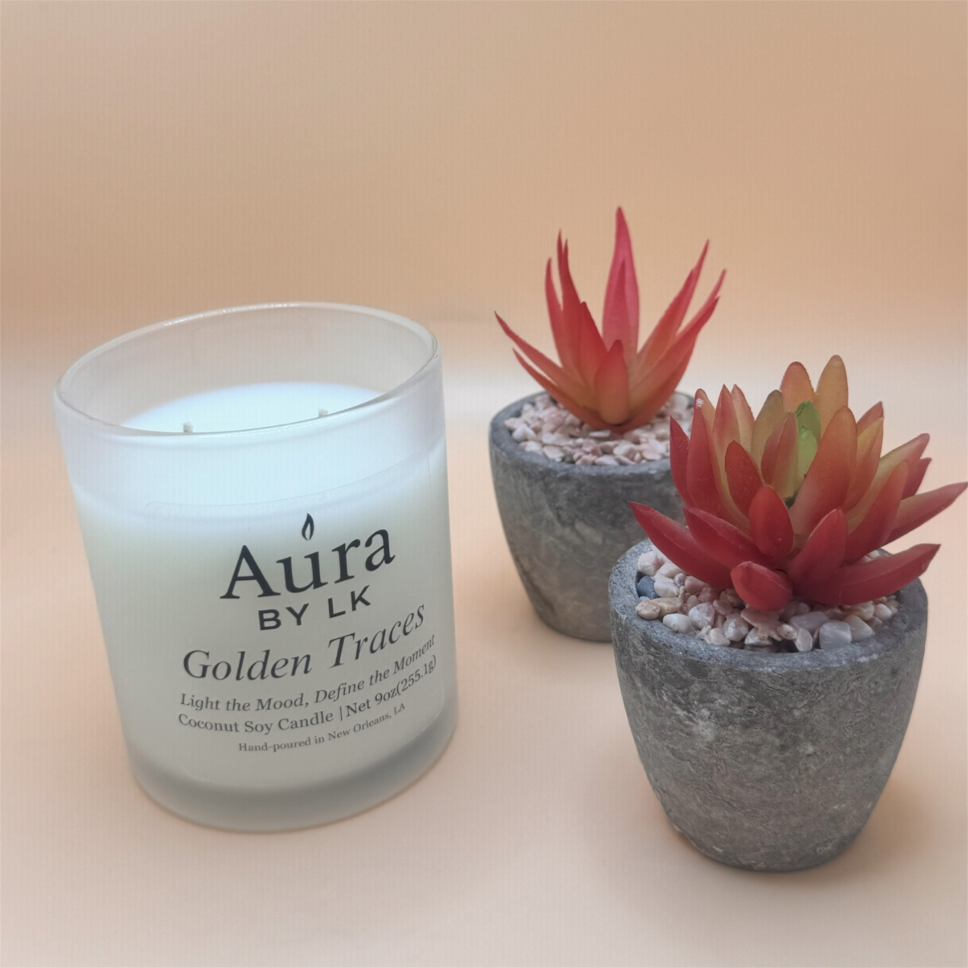 Double-wick coconut soy candle poured in a sleek 10oz frosted glass jar. Net Wt. 9oz/255.1g
